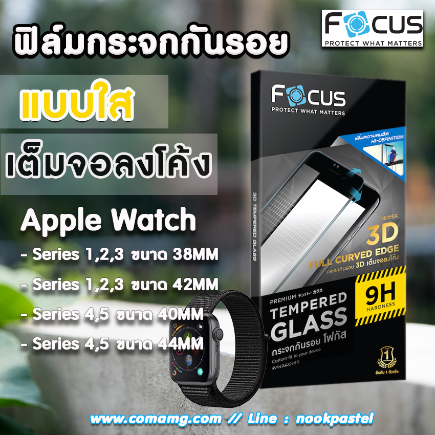 Focus Tempered Glass Full Curved Edge 3Dกระจกกันรอย 3D เต็มจอลงโค้ง สำหรับ Apple Watchกระจกรุ่นนี้ให้การปกป้องเต็มหน้าจอโค้งถึงขอบเครื่อง สัมผัสเนียนไปกับตัวเครื่อง ขอบโค้งมน สวยเหมือนไม่ได้ติดกระจกกันรอย จับสบายมือ ทัชลื่นไม่สะดุด คุณสมบัติของกระจก 3D