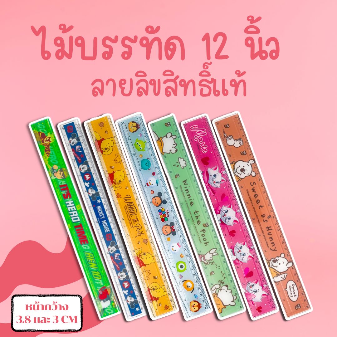 ไม้บรรทัดพลาสติก 12/7/6นิ้ว ไม้บรรทัดลายการ์ตูน ลิขสิทธิ์แท้